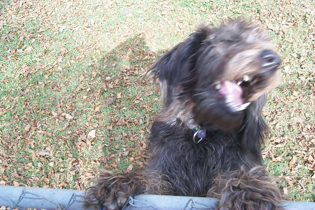 Annie is peeking through the fence